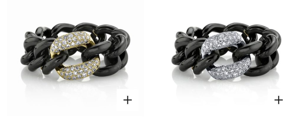 As someone that loves mixing my metals, I also have an appreciation for mixed materials/textures within fine jewellery pieces. This can be seen strongly in SHAY’s designs with their use of ceramic in various colour-ways. Above I am wearing the Black Ceramic Essential Link Bracelet & ring: comprised of 18k white gold with black ceramic links. These rings have such a delightful flex to them.